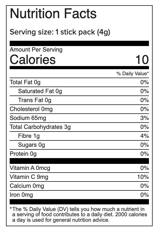To Make:Â Add 1 packet to 350mL (12 oz) of cold water. Shake well until dissolved. Add ice and serve